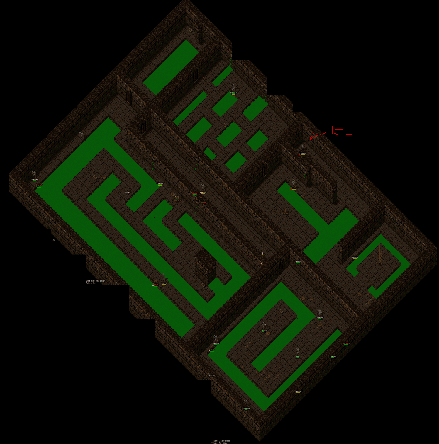 初めての場所なのでよく解りませんが、ここにもmobが集結しておりました。構成はZombie,Skelton,Bat多数とHH,P@,BM,GiantSpiderなど、狭い街路での戦闘でまず一回死亡。